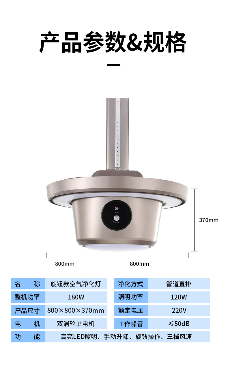 【功能】高亮LED照明、手動(dòng)升降、旋鈕操作、三擋風(fēng)速