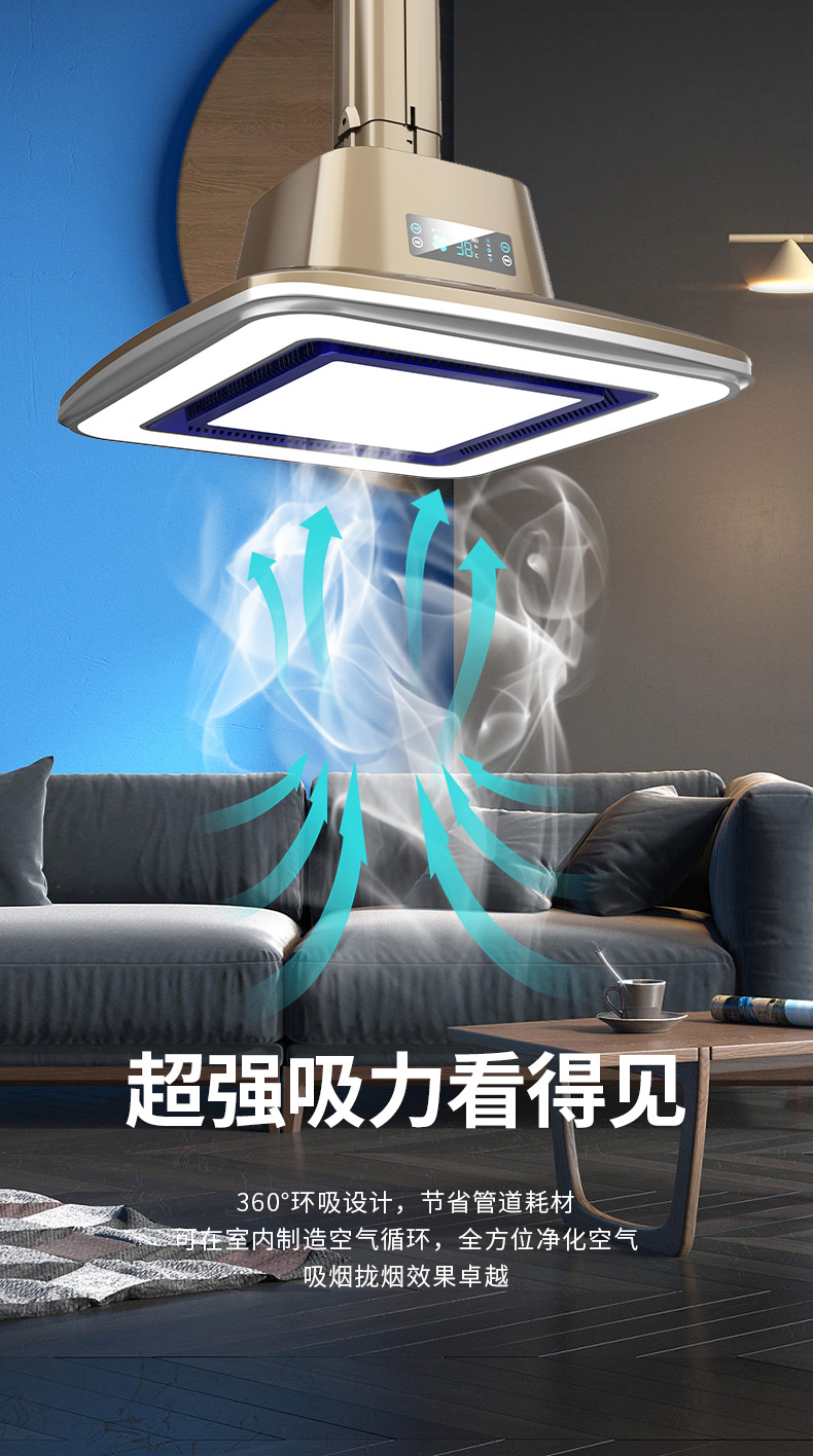 酒店、棋牌室、包間、KTV、會所、候車廳等除煙除塵凈化燈,集吸煙、照明、裝飾三位一體