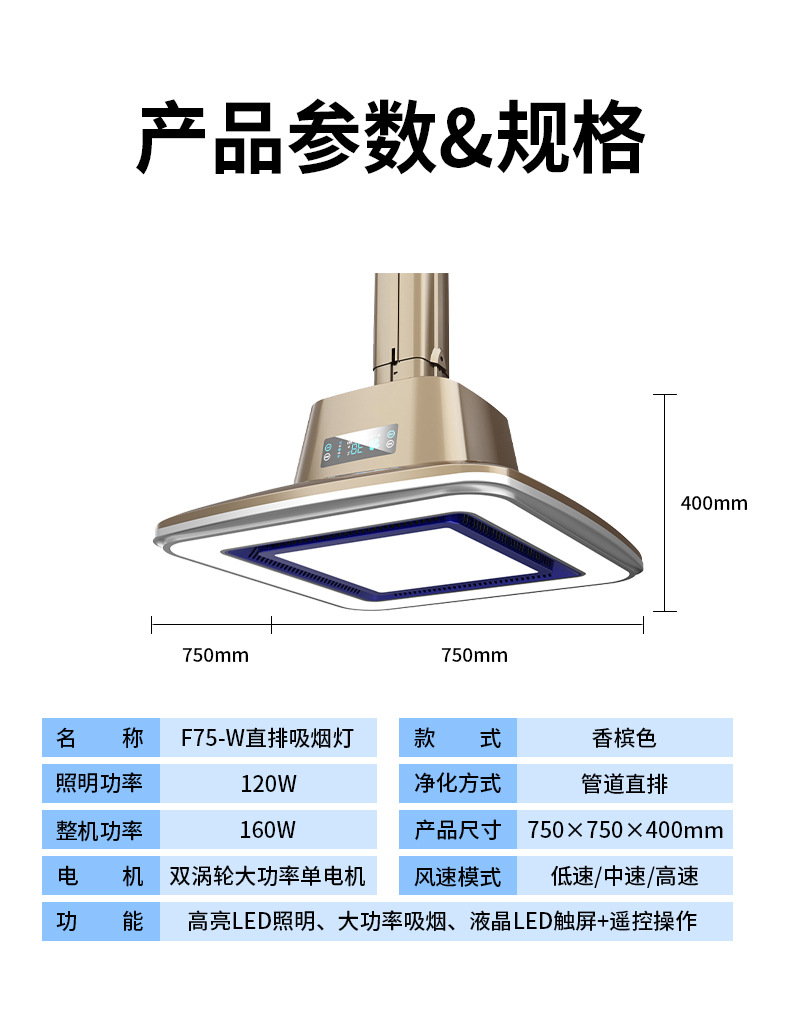 【功能】高亮LED照明、大功率吸煙、液晶LED觸屏+遙控操作