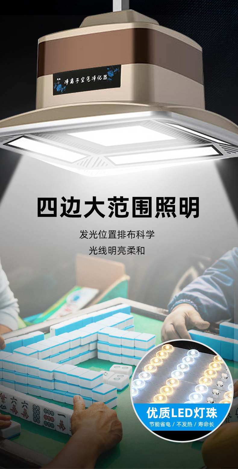 酒店、棋牌室、包間、KTV、會所、候車廳等除煙除塵凈化燈,集吸煙、照明、裝飾三位一體