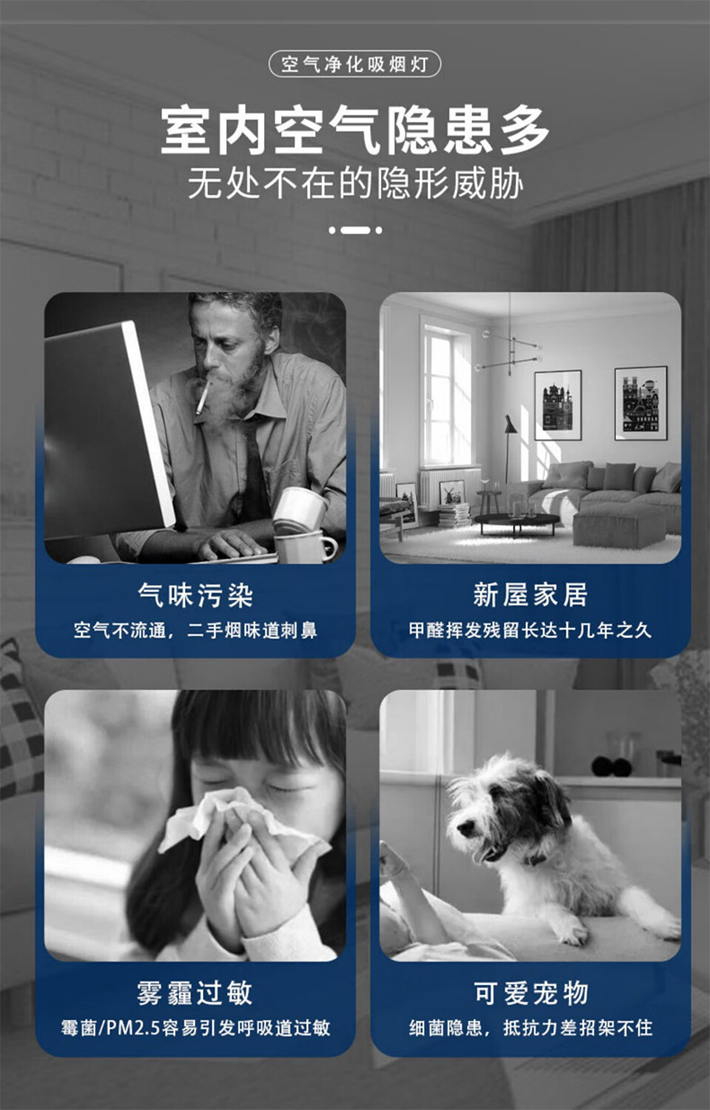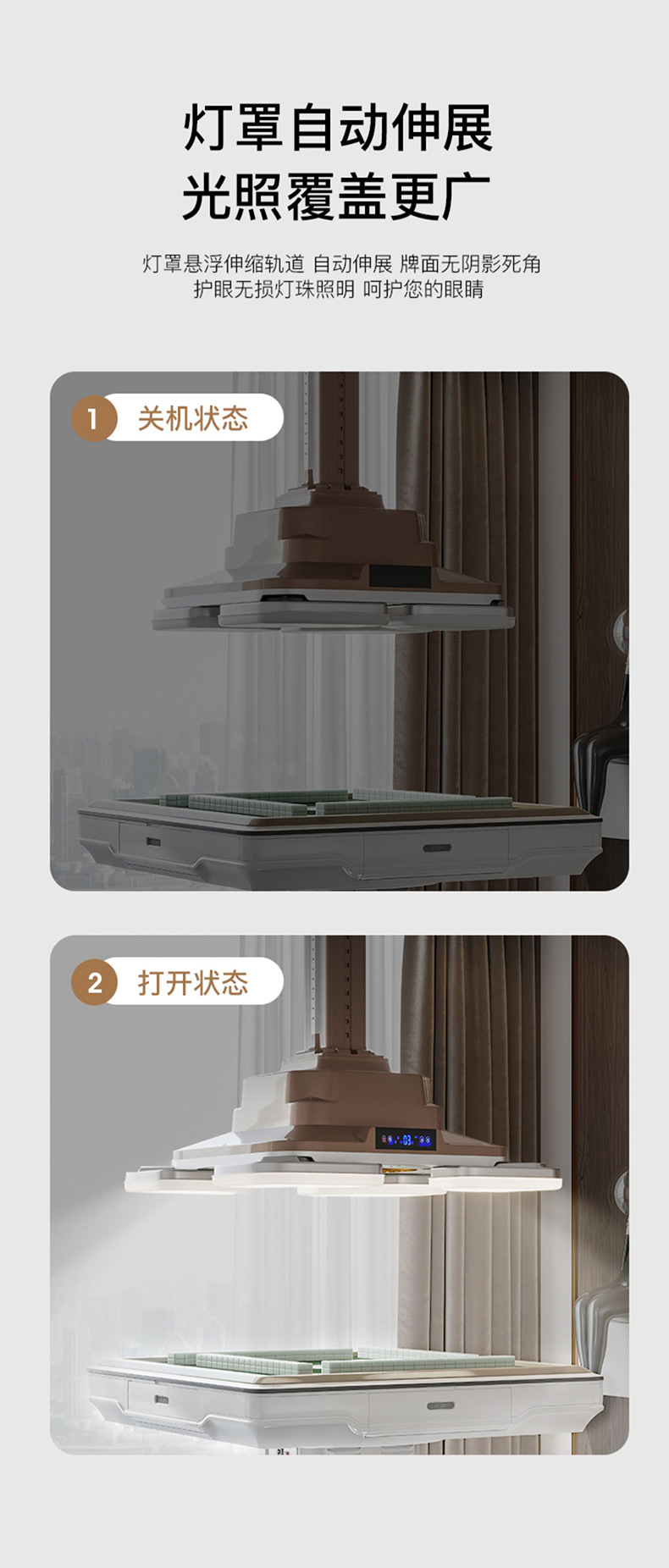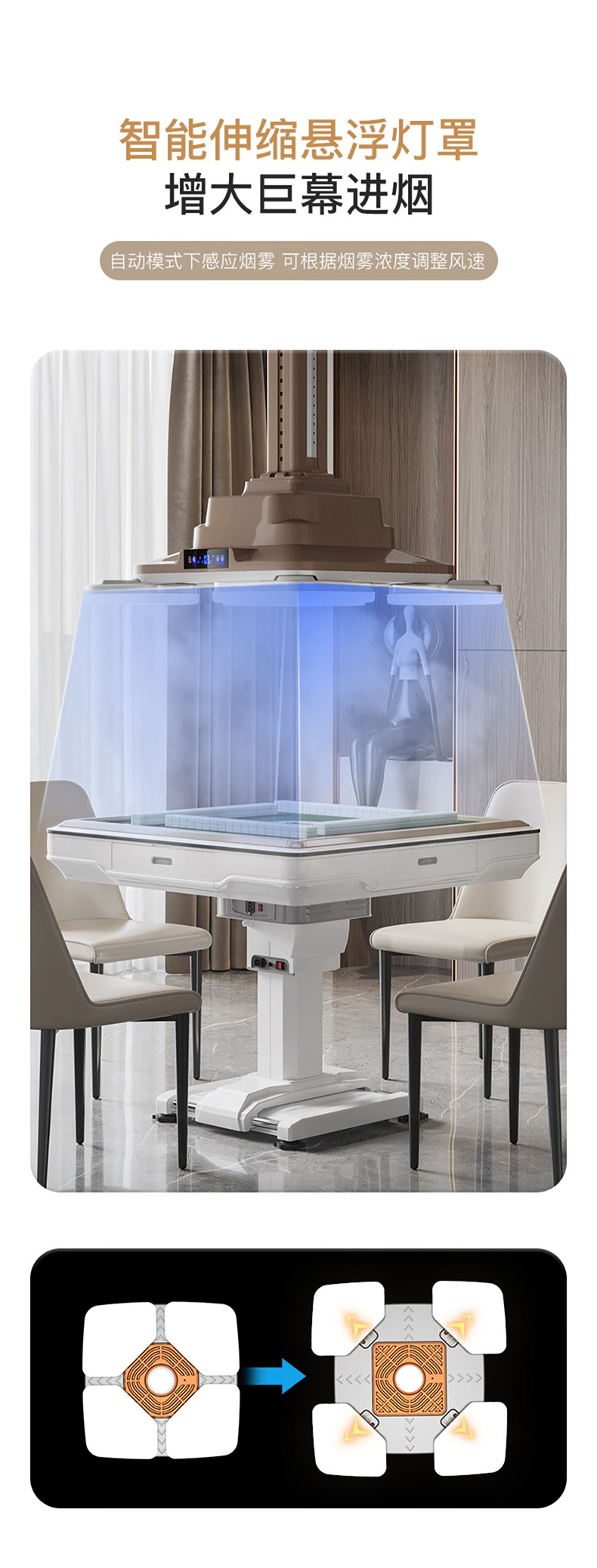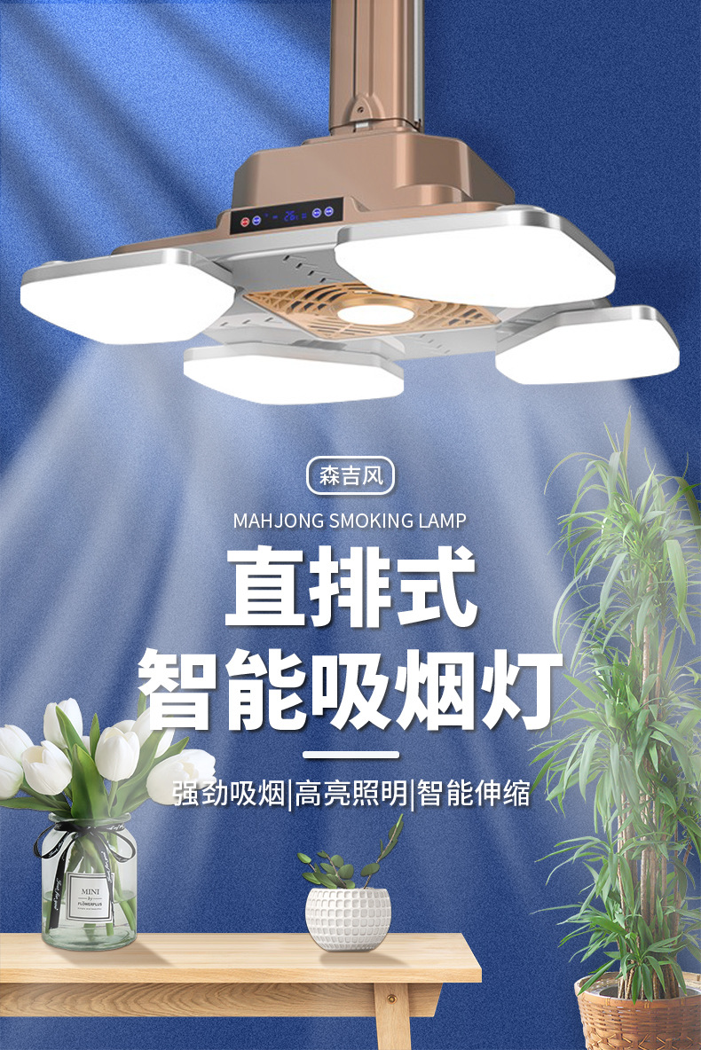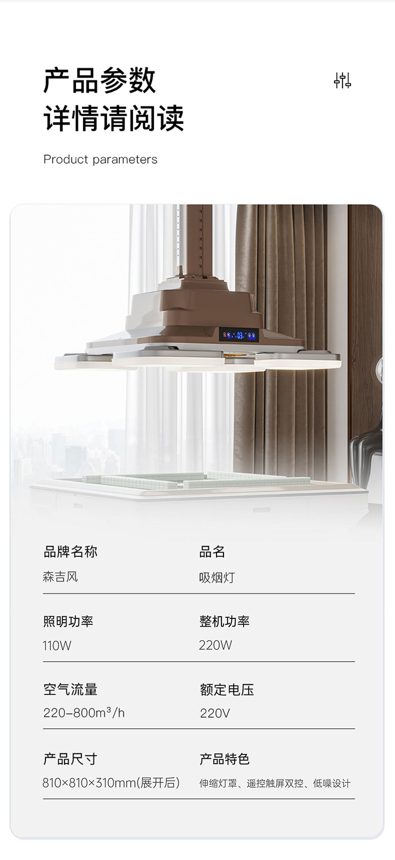 燈罩自動伸展,光照覆蓋更廣,自動模式下感應煙霧,可根據煙霧濃度調整風速,紅外遙控+液晶觸屏